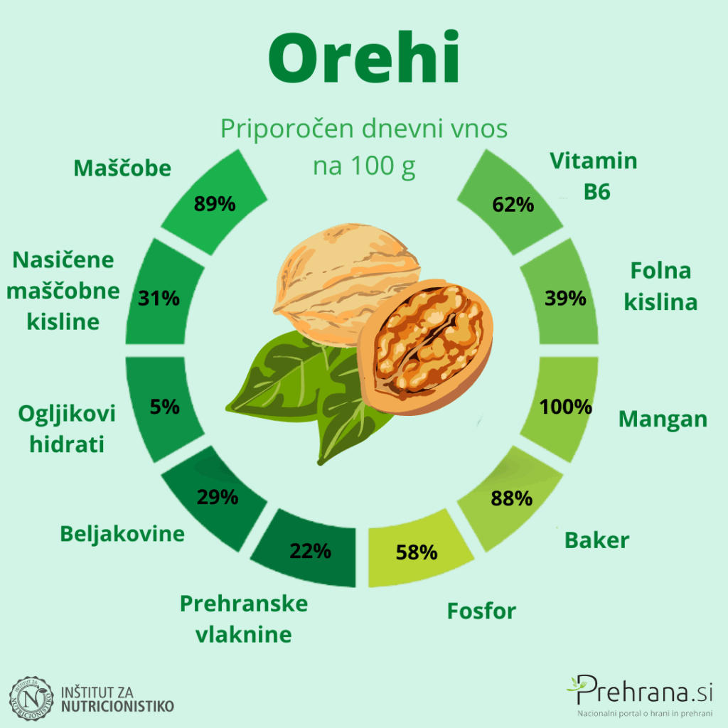 Orehi so nepogrešljivi v vsaki kuhinji – od izjemne slovenske potice do preprostih, vendar hranilno bogatih prigrizkov. Slovenski orehi imajo bogat in poln okus, ki ga ne pokvari dolga pot iz tujine ali dolgotrajno skladiščenje. Če želite preverjeno kakovost, poiščite orehe z znakom »izbrana kakovost – Slovenija«, ki so pridelani v Sloveniji, obrani ob pravem času in skrbno sušeni, da ohranijo svojo aromo in hranilno vrednost.