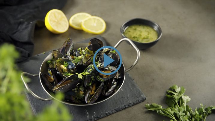 Lonec odkrijemo. Školjke, ki se niso odprle, takoj zavržemo, odprte pa poberemo iz lonca in serviramo v skledo ali na velik krožnik. V lonec z omako stresemo preostale drobtine. Dobro premešamo in po okusu začinimo s soljo. Omako kuhamo še 1 do 2 minuti, potem pa jo polijemo po školjkah. Jed postrežemo s svežim kruhom.